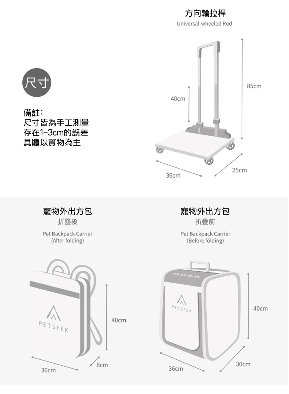 重量 :1.3kg(寵物包)、1.33kg(拉桿)