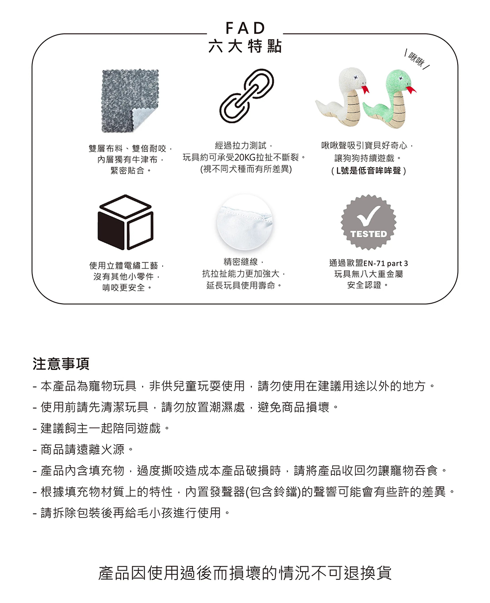 產品內含填充物,過度撕咬造成本產品破損時,請將產品收回勿讓寵物吞食
