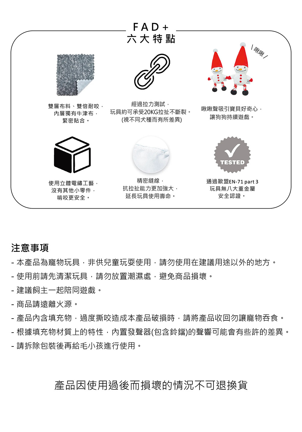 產品內含填充物,過度撕咬造成本產品破損時,請將產品收回勿讓寵物吞食