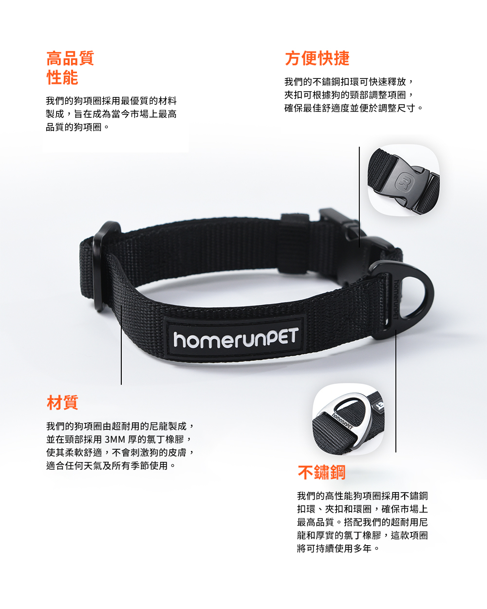 ● 不鏽鋼扣環可快速釋放