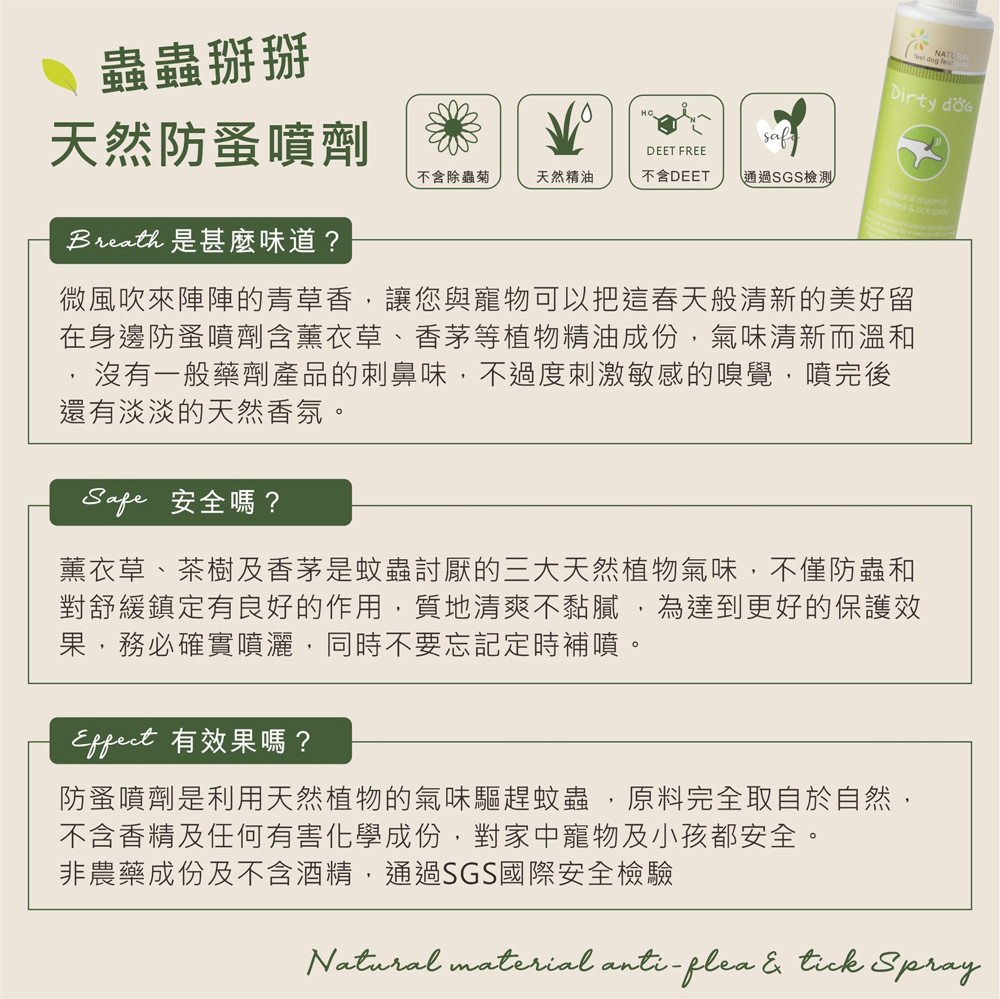 ● 可直接噴於狗狗身上,不擔心藥物中毒的危險