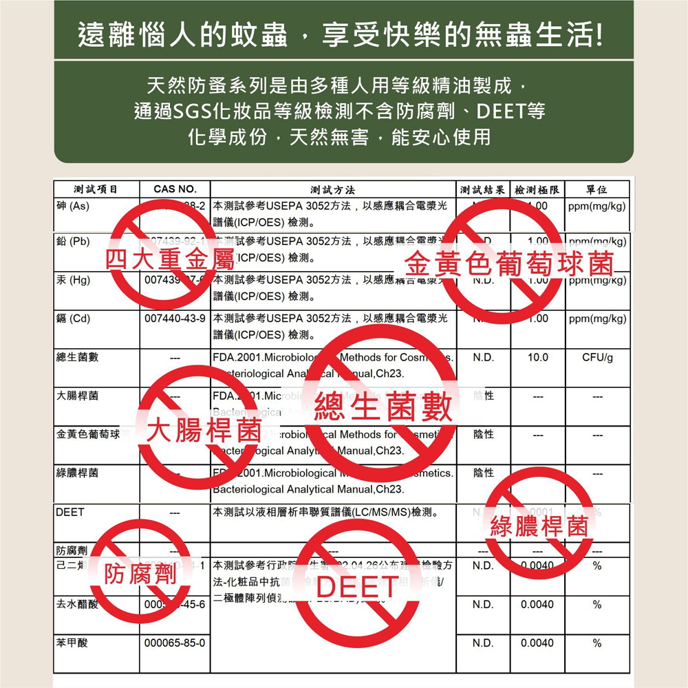 ● 不含化學藥性不含DEET、SGS認證安全無毒