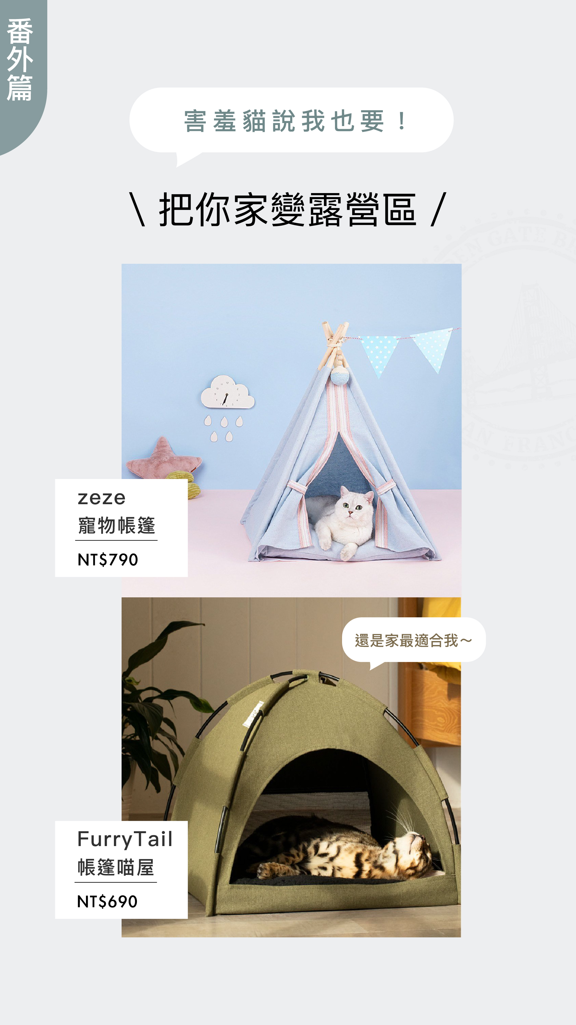 替不同個性的貓準備了兩種不同的偽出國露營風
