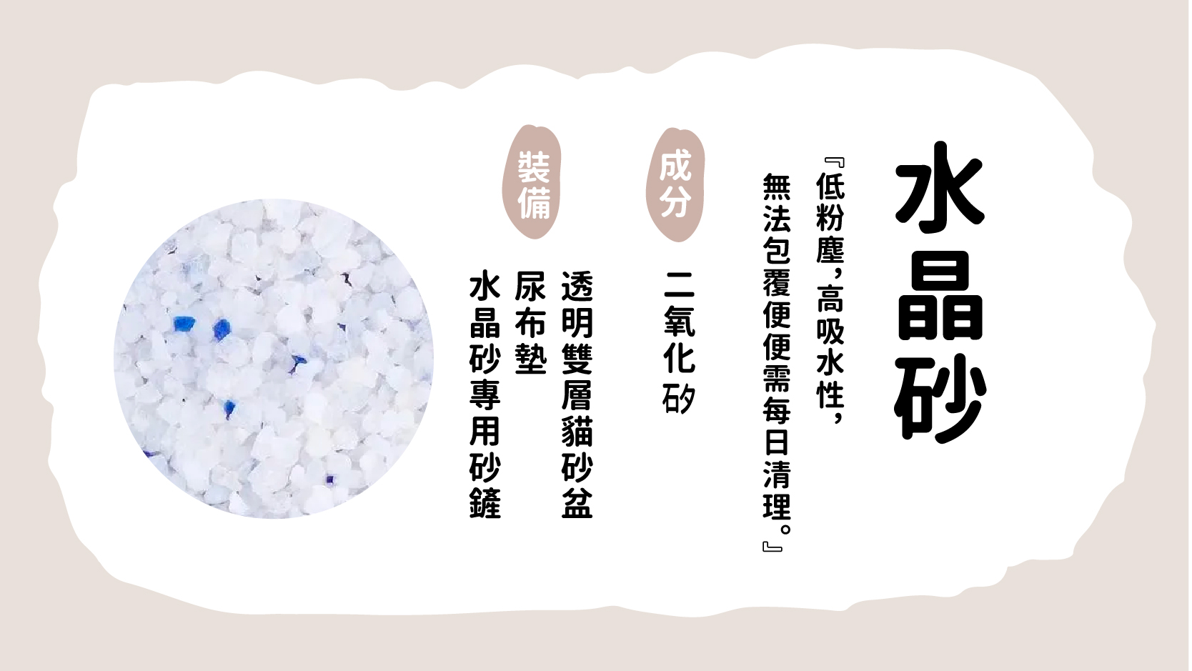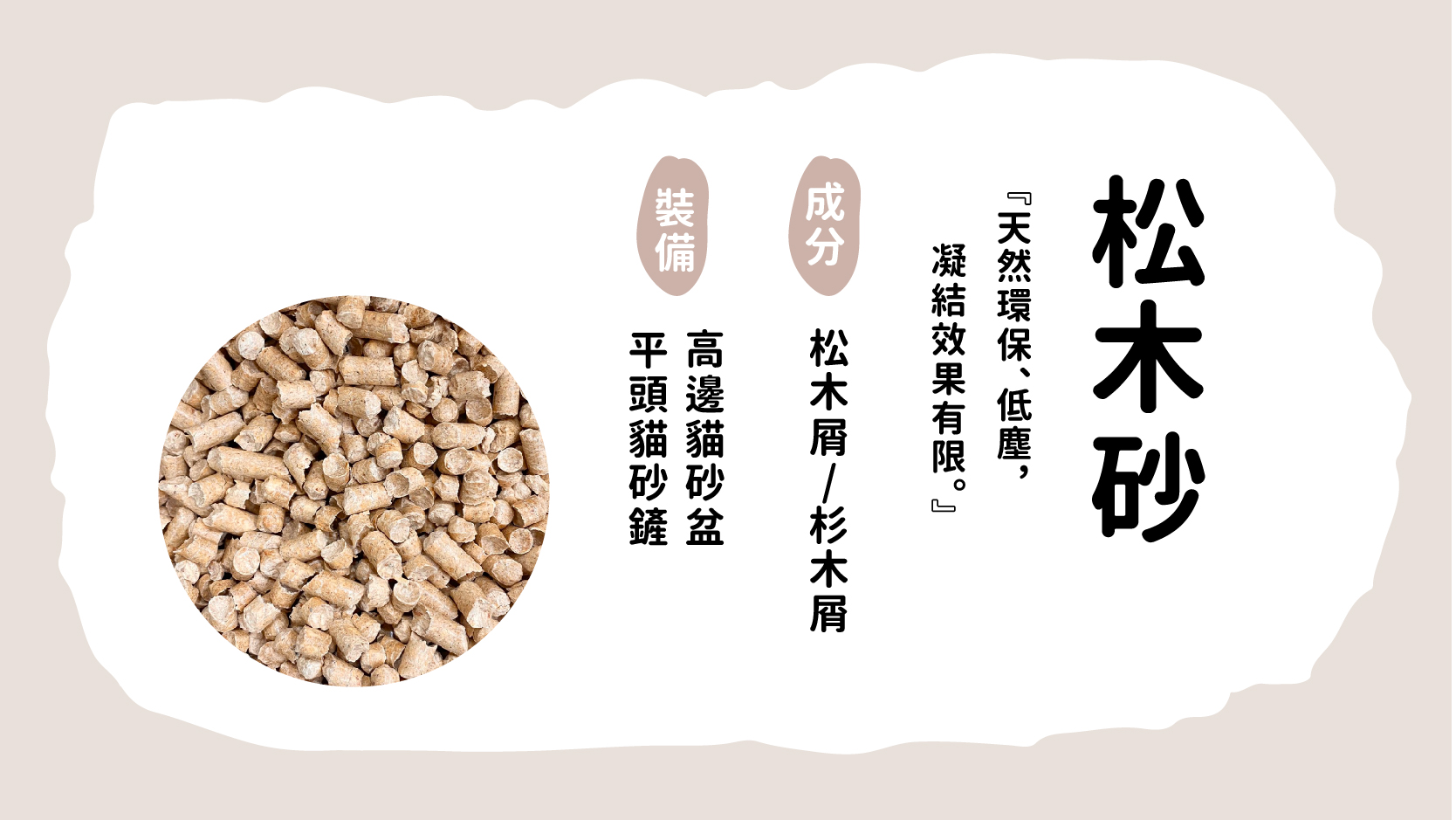 『低粉塵,高吸水性,無法包覆便便需每日清理。』