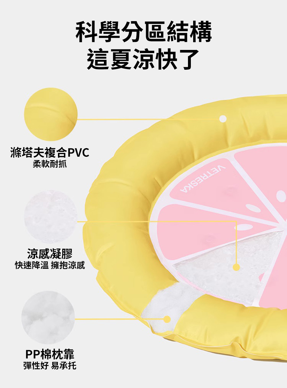 材質 : 滌塔夫面料、液體凝膠、PP棉