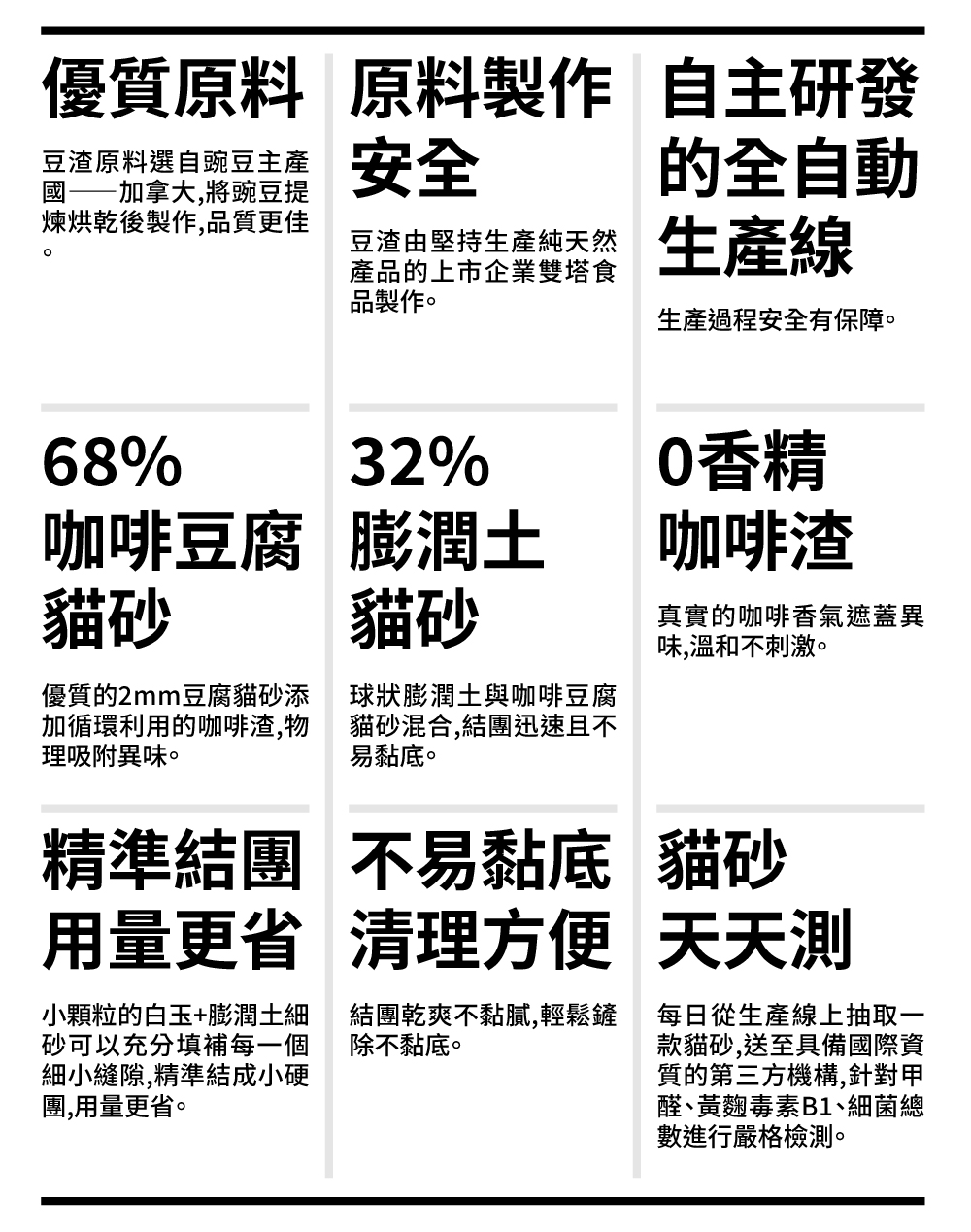 ● 68%咖啡豆腐貓砂+32%礦砂科學混比