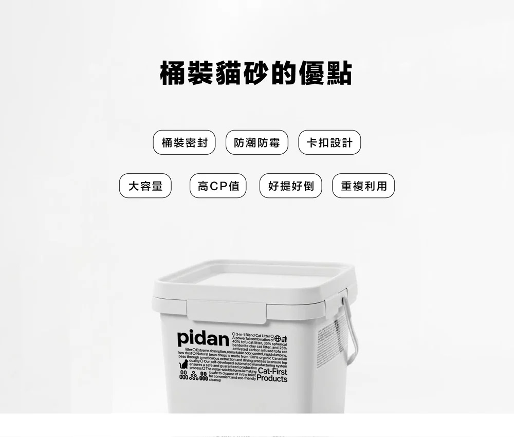 ● 5.2kg 桶裝大容量,三種貓砂一桶集合