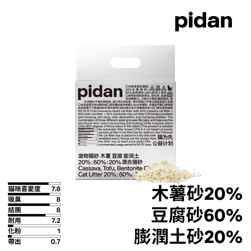 ● 20%木薯貓砂+60%原味豆腐砂+20%球形礦砂
