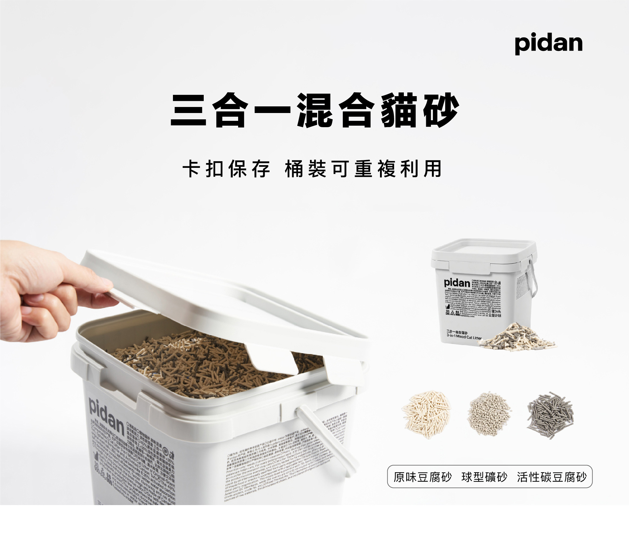 ● 5.2kg 桶裝大容量,三種貓砂一桶集合
