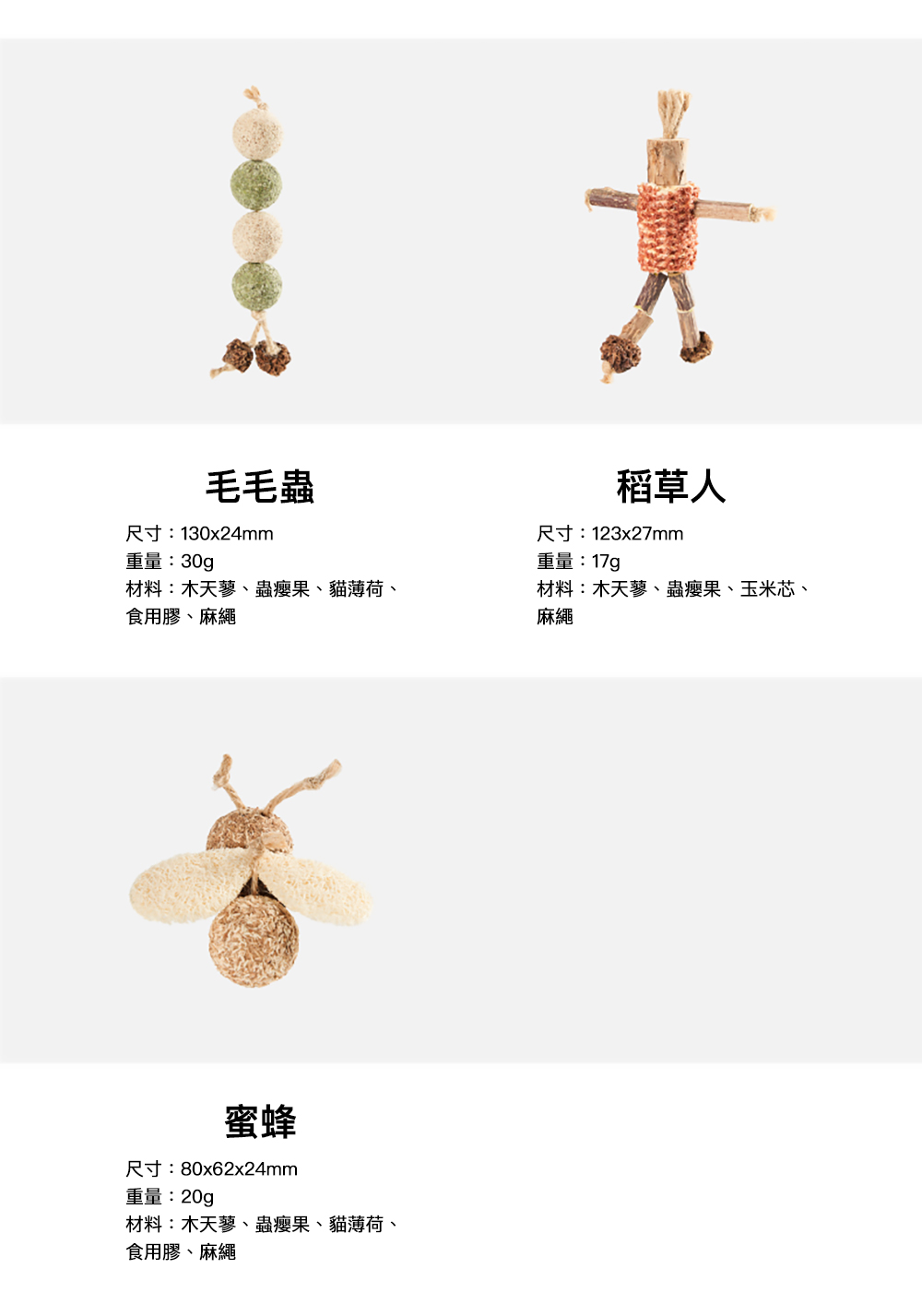 材料:木天蓼、蟲瘿果、貓薄荷、食用膠、麻繩