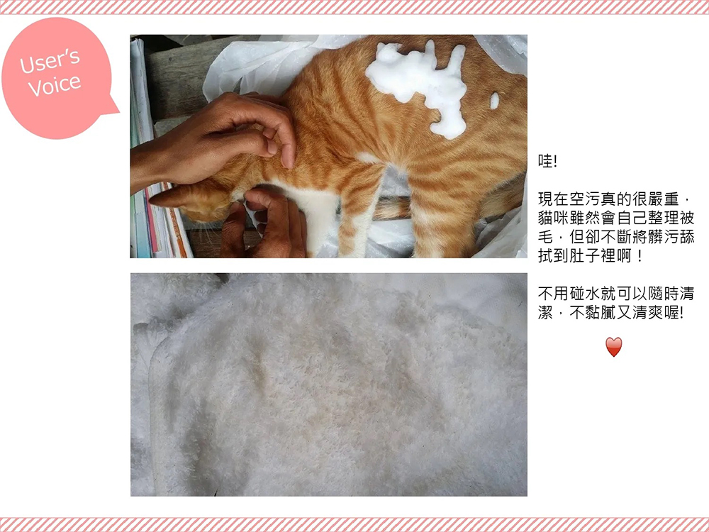 ● 不需用水,擦拭即可,不會造成貓咪任何壓力