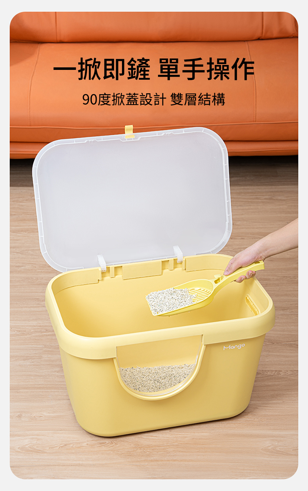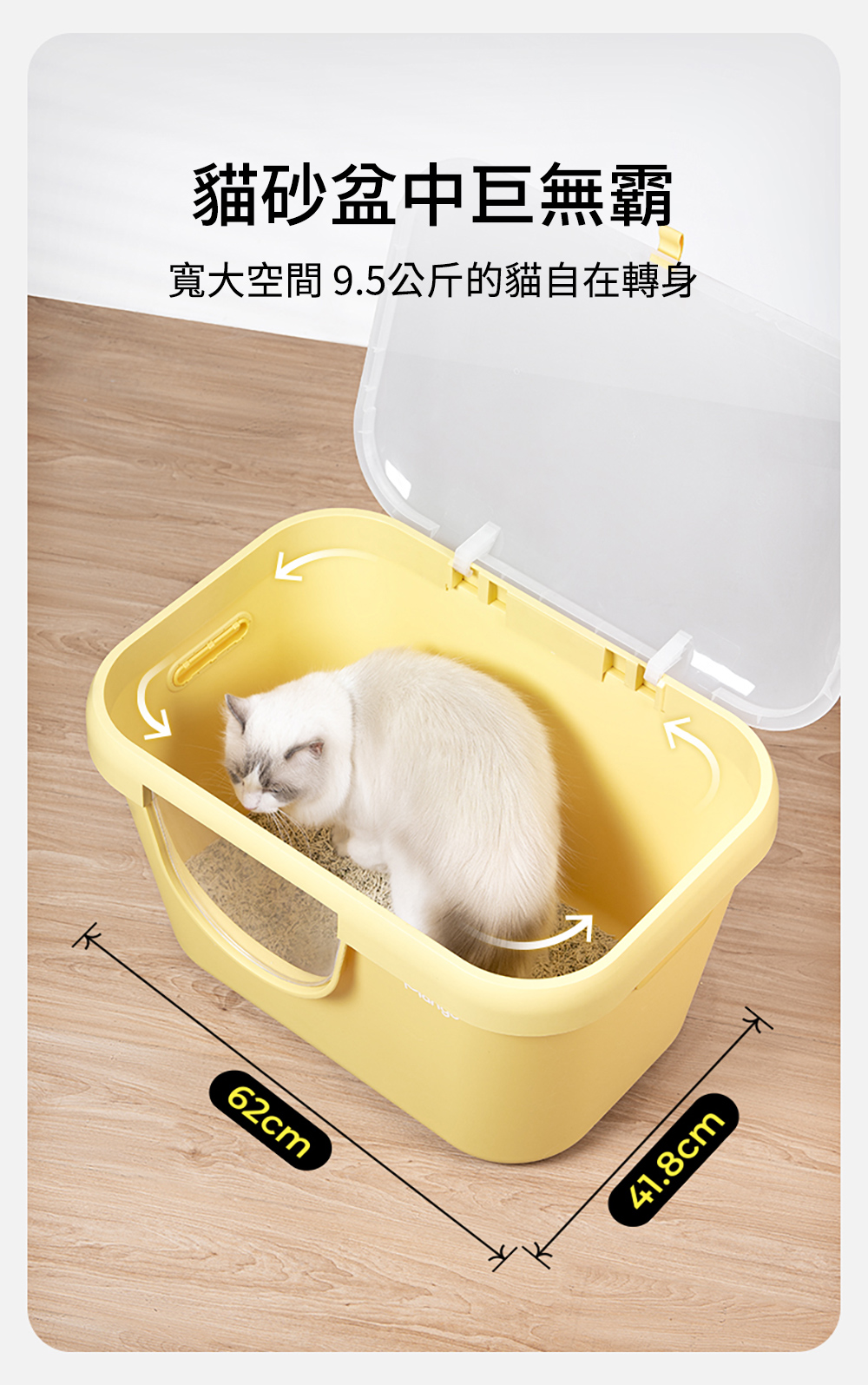 內容物:大型貓砂盆、上蓋、貓砂鏟、矮腳控砂台