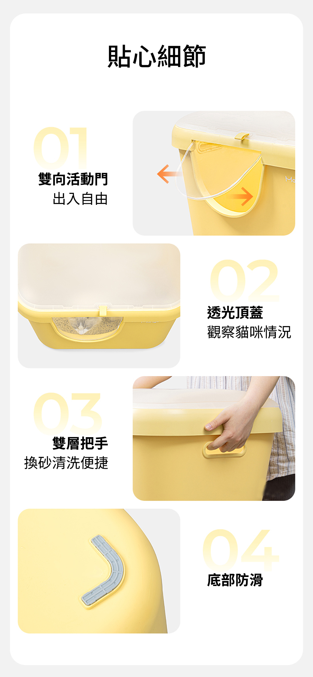 ● 盆體加高至33cm 防止貓砂飛濺