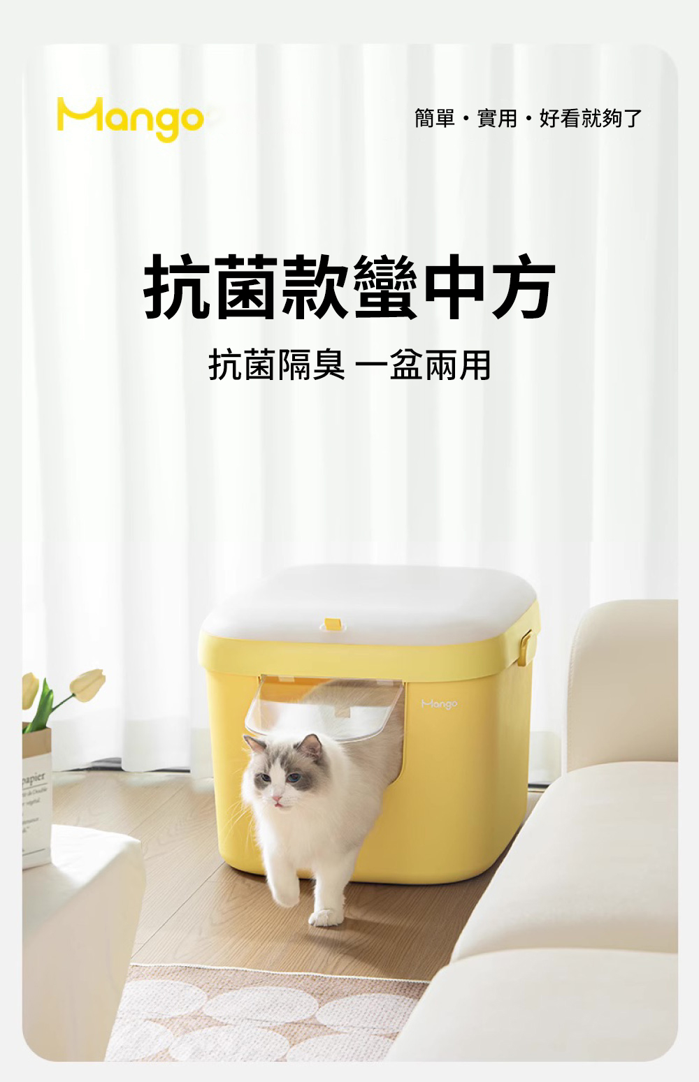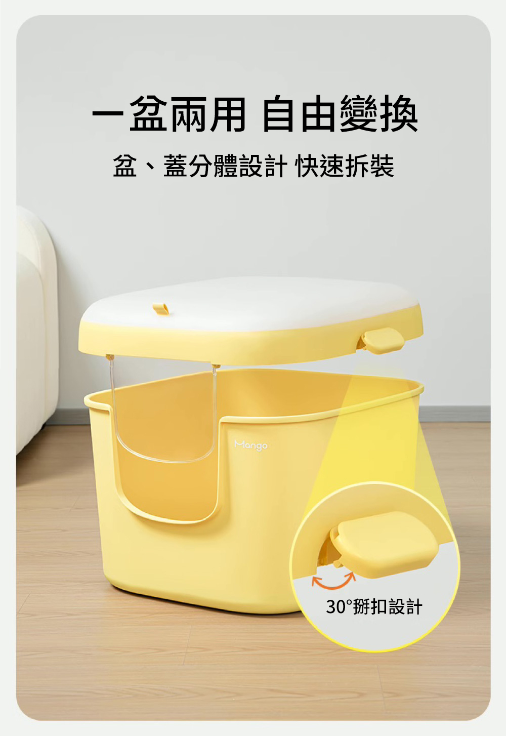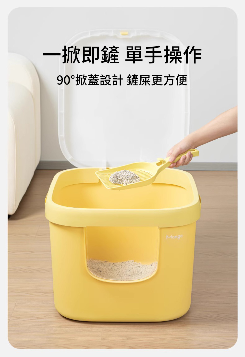 內容物:蠻中方貓砂盆、上蓋、貓砂鏟、矮腳控砂台